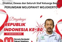 Direktur, Dewan Pengawas dan Seluruh Staf Keluarga Besar Perumdam Mojopahit Mojokerto, Mengucapkan: ” Dirgahayu Kemerdekaan Republik Indonesia ke-80, 17 Agustus 1945 – 17 Agustus…